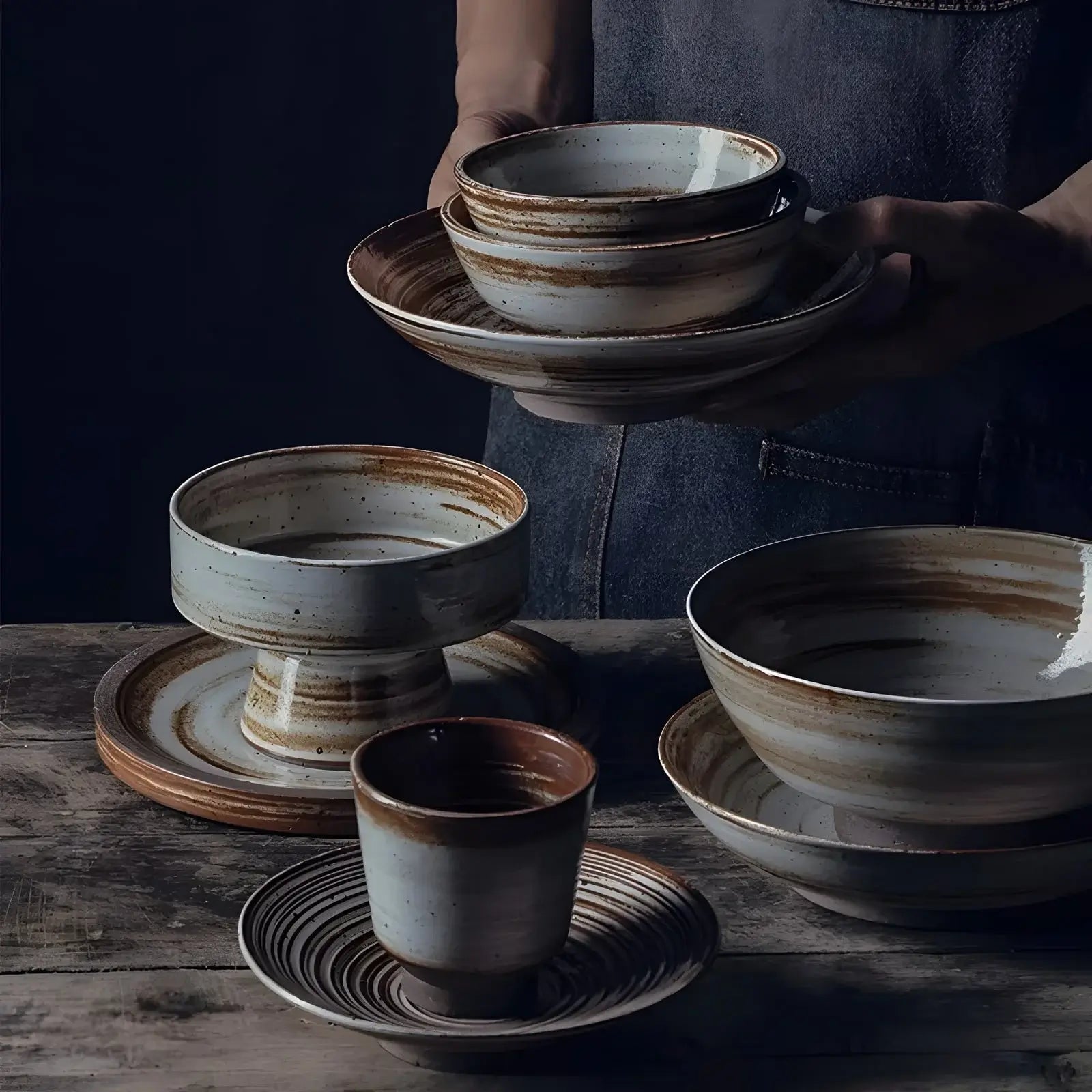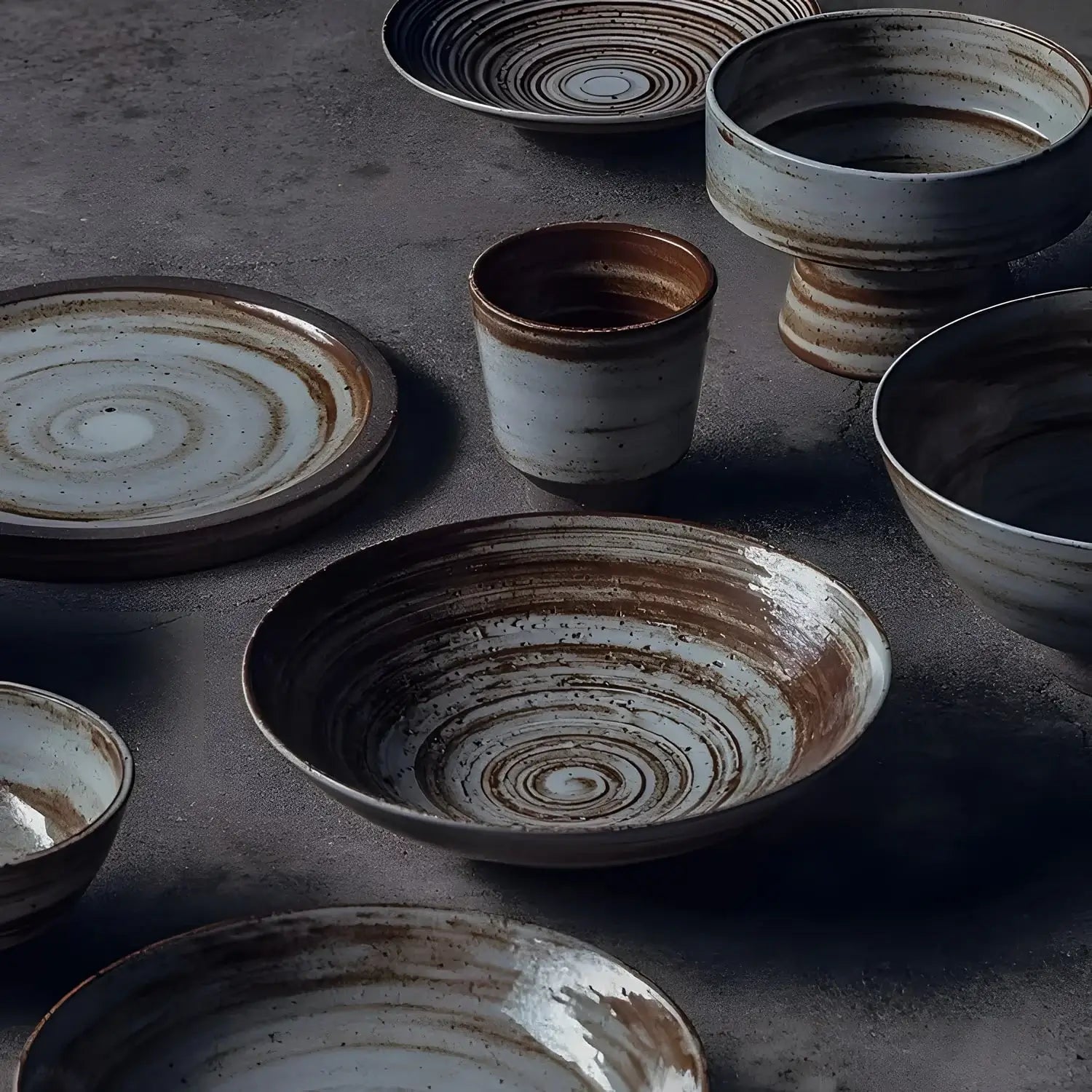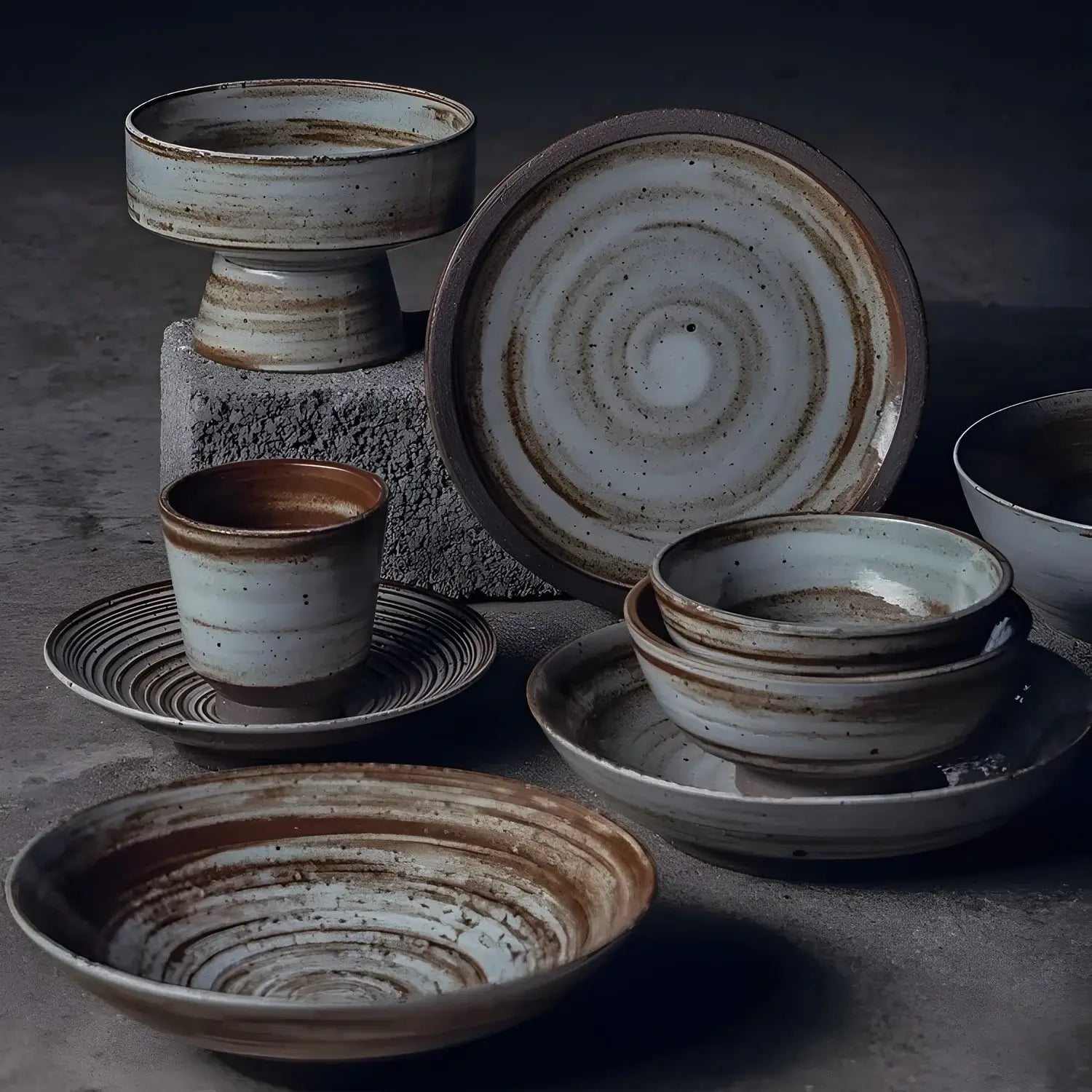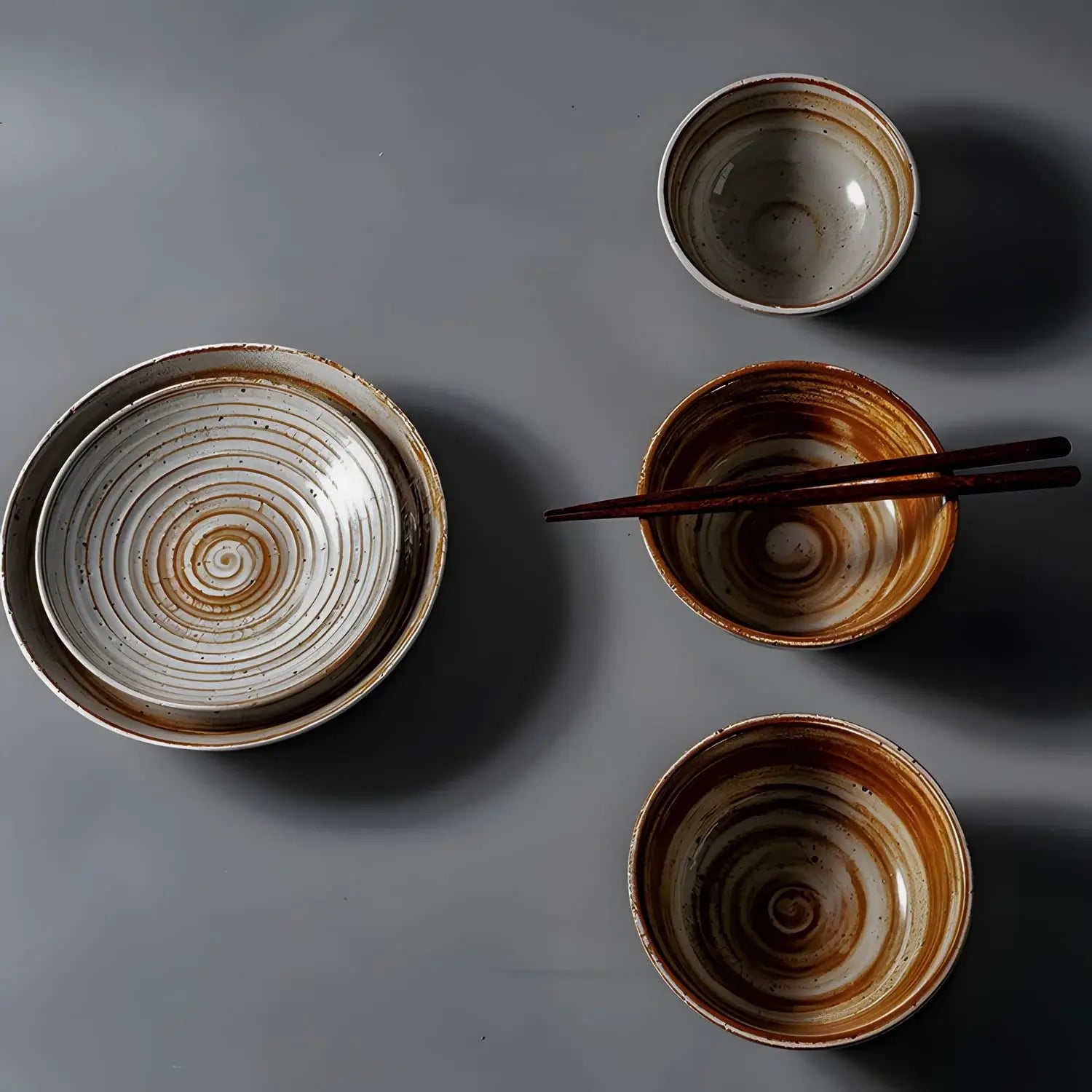 Explore Naomi, designed to infuse your dining moments with rustic charm and artisanal beauty. Naomi features a captivating spiral pattern in earthy tones, evoking the natural elegance of handcrafted pottery. Each plate and bowl, with its unique swirl design, adds character and warmth to your table setting. Available in a cohesive set that includes bowls and cups, Naomi is perfect for serving a variety of dishes, from hearty stews to delicate desserts. The blend of aesthetics and functionality ensures that every meal is a visual delight and a pleasure to enjoy.