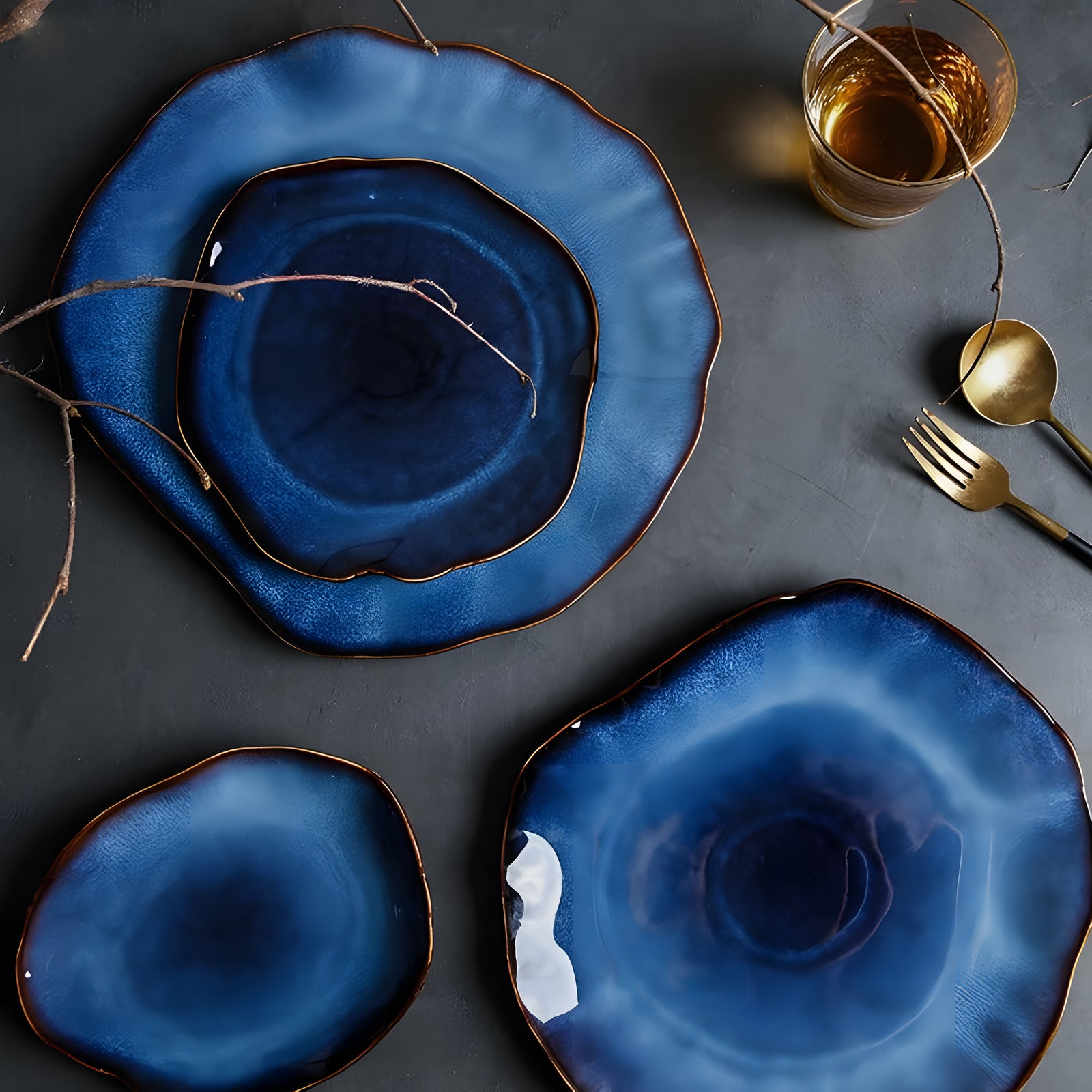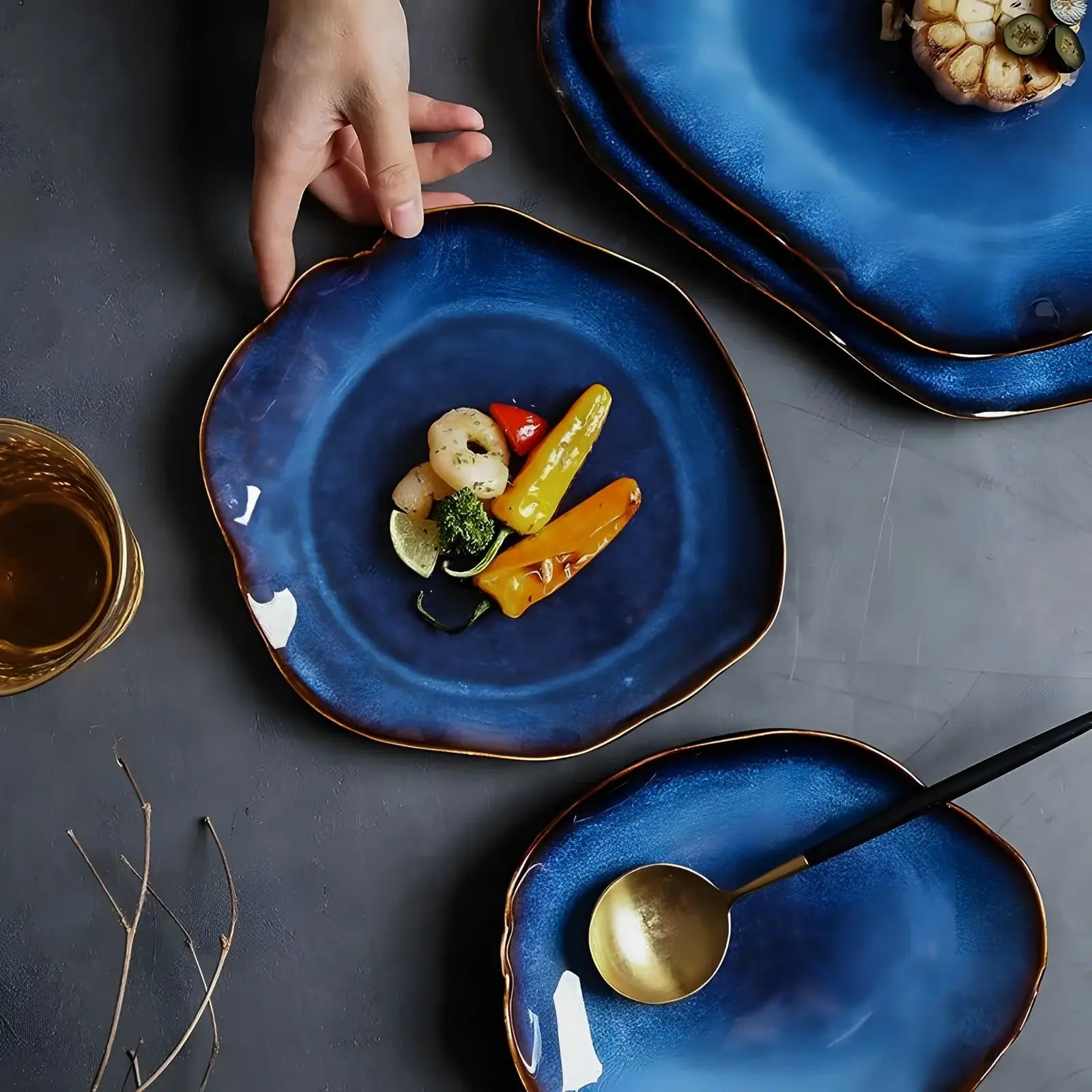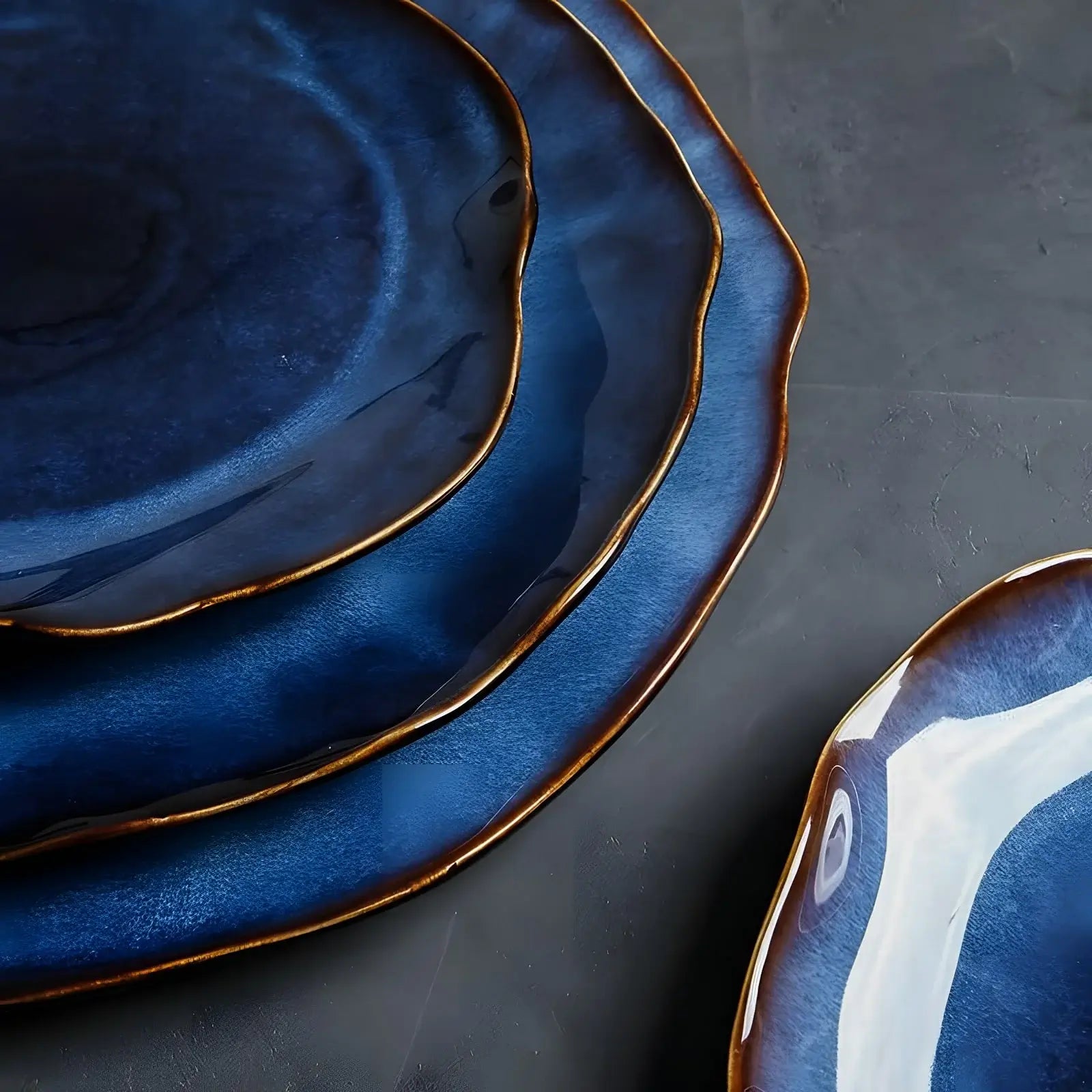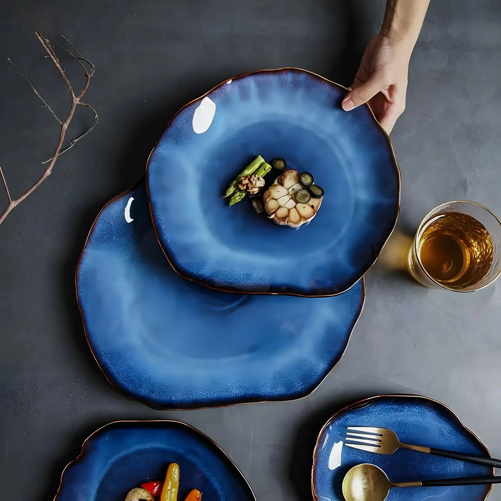 Introducing the Takashi blue glazed plate collection, an exquisite choice for any dining occasion. Our Takashi collection showcases a stunning royal blue design with unique glaze patterns, adding a touch of artistic sophistication to your table setting. The collection is available in four versatile sizes, catering to all your dining needs, from starters to main courses. Each plate is meticulously crafted with a smooth, glossy finish and intricate glaze patterns, ensuring that no two plates are alike.