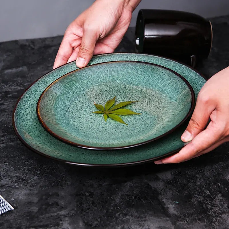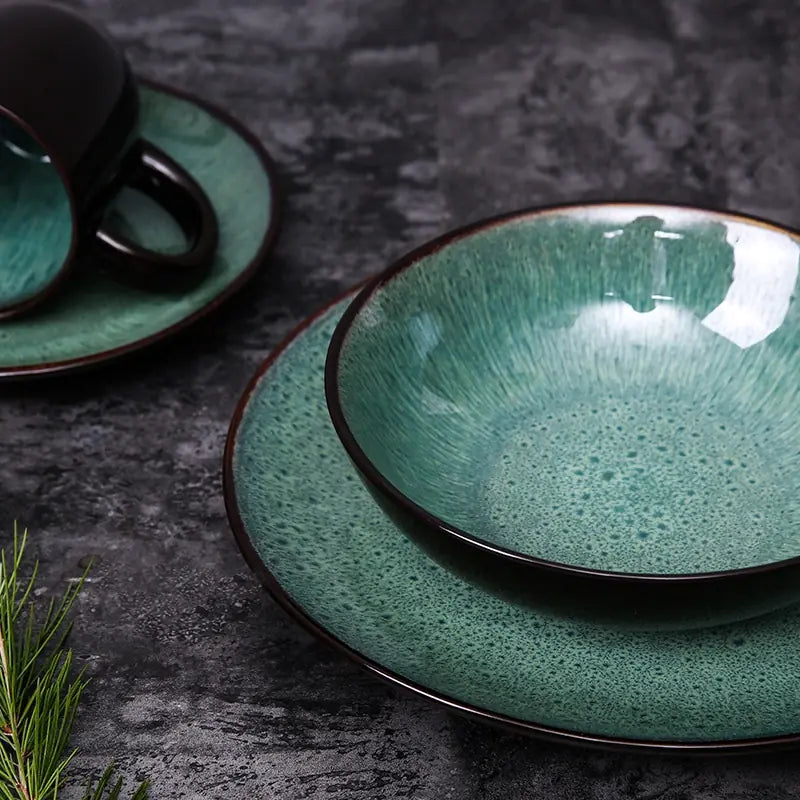 Bring a touch of nature’s beauty to your dining table with our exquisite green stoneware set. Each piece features a soothing green glaze with delicate speckling and a refined dark rim, creating a harmonious blend of earthy tones and elegant craftsmanship. Ideal for elevating both everyday meals and special gatherings, this set exudes a calm sophistication that complements any table setting. Embrace the artistry and tranquility that this collection brings to your culinary presentation.